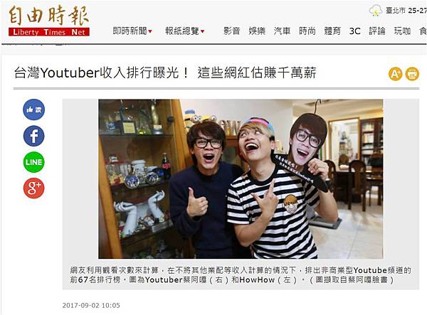 舉例來說,現在很紅的Youtuber,靠著上傳影片到YouTube,衝高觀看次數,Google會支付廣告費,可以自我表現,收入優渥又自由。